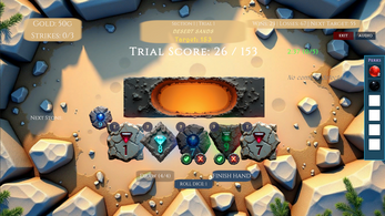 Boss trials appear every few levels and cut your draws from 4 to 3. Biome penalties stack. One careless stone kept can turn a winning hand into a strike.